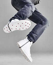 Urban, adventurous and functional spirit: chunky basketball-inspired high-tops, as well as canvas desert boots.